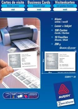 Die PC-bedruckbare Visitenkarte in Profi-Qualität: perfekte Optik durch hohe Papiergrammatur, hat saubere Ränder und begeistert durch beste Ergebnisse auf hochwertigem Karton. Der Clou: die einzigartige Quick&Clean Technology. Denn mit Quick&Clean haben Sie den Knick-Raus: einfach die bedruckten Einzelkarten an der Stanzlinie nach oben knicken – knack, fertig. Das Ergebnis: Ihre ganz persönliche Visitenkarte, perfekt wie aus der Druckerei.